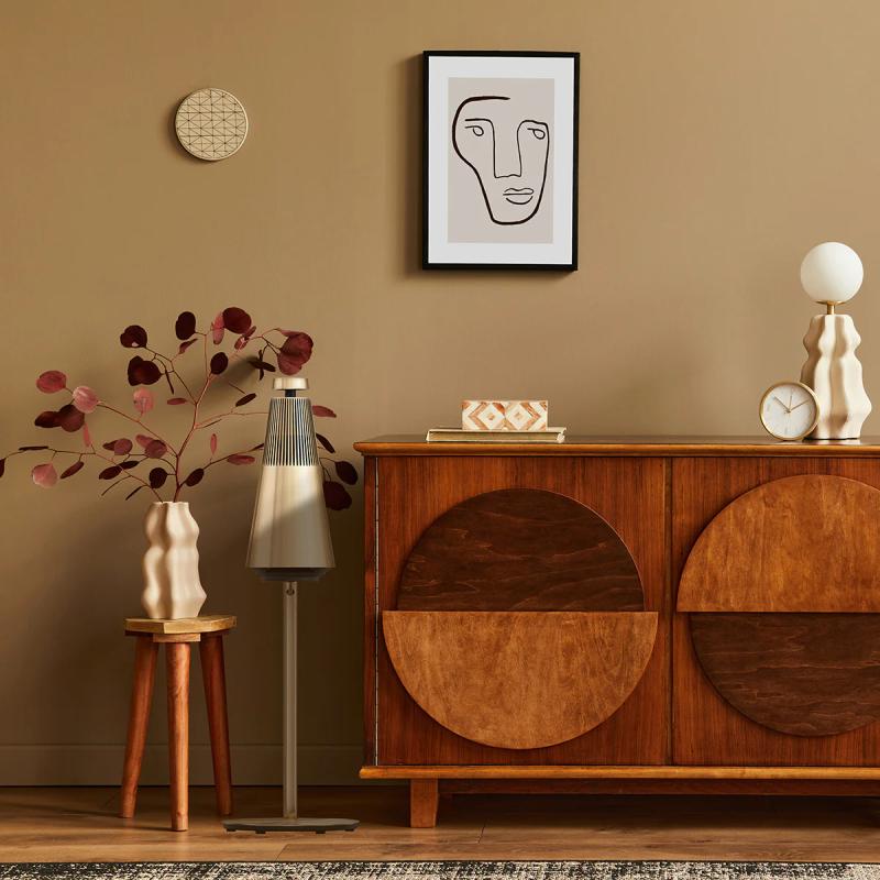 The BeoSound 2 Floor Stand in Gold Edition is a sophisticated and robust base designed to perfectly complement and enhance the placement of your BeoSound 2 speaker.