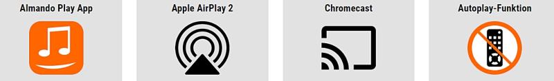 Multiplay Surround -dekooderin tai SoundCenter Surroundin konfigurointi voidaan myös tehdä nopeasti ilman erityistä aiempaa tietoa. Tätä varten on ilmainen ALMANDO PLAY -sovellus – sekä iPhonen Appstoressa että Android-älypuhelimien Playstoressa.