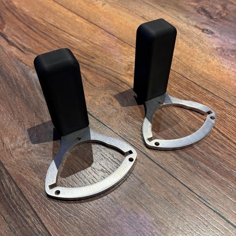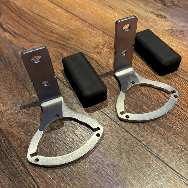 Ruostumattomasta teräksestä valmistettu seinäkiinnikesarja BeoLab 6000 / 6002:lle.